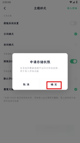 由于开发框架的局限性,百灵创作尚不支持直接使用手机设置的字体。您可以所需字体文件并导入,实现字体一致性。