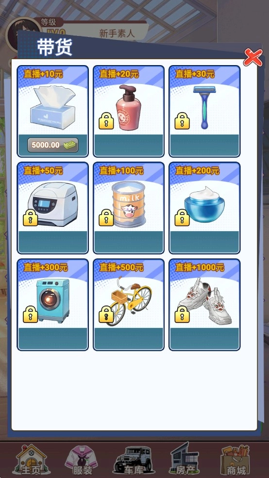 1、借助直播挂机与养成的形式,去感受开店的整个过程。