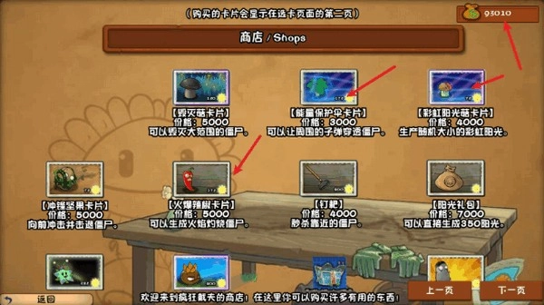 2、打开商店后,在这里消耗金钱就能购买各种植物了。