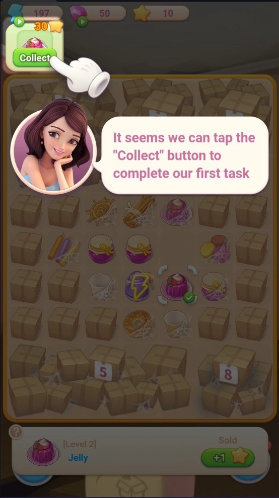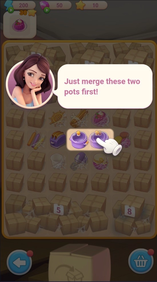 1、首先,依照引导将相同的道具进行拖动,从而合成更高级的道具。