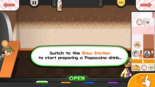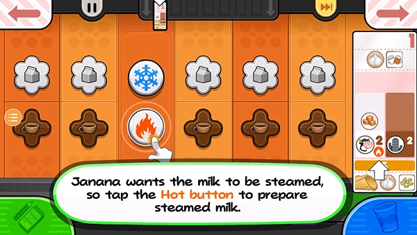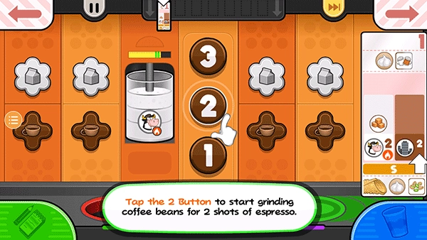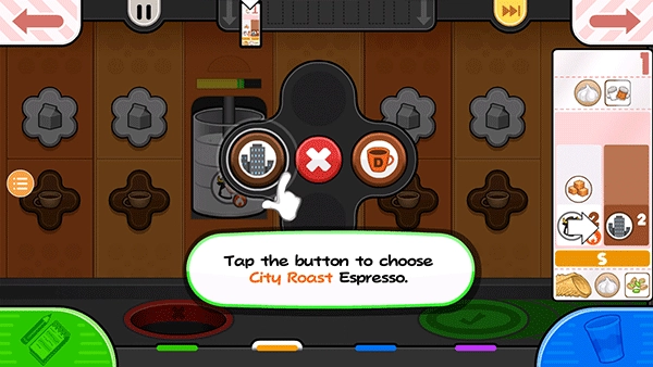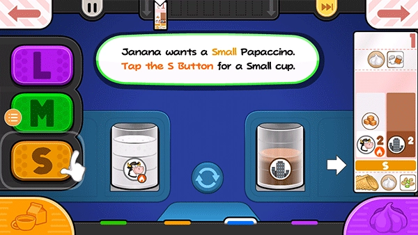 14、贾纳纳想要一个小的Papaccino,点击小杯子的S按钮。