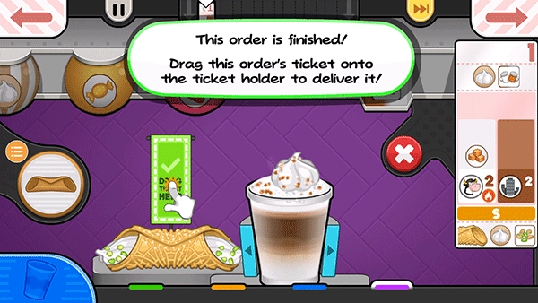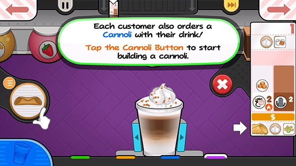 21、每位顾客都另外点了一杯卡诺里酒,点击“奶油卷”按钮便可开始制作奶油卷。