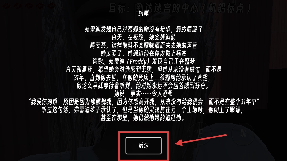 4、看完剧情后,点击【后退】按钮,可返回游戏界面或主菜单,结束剧情浏览。