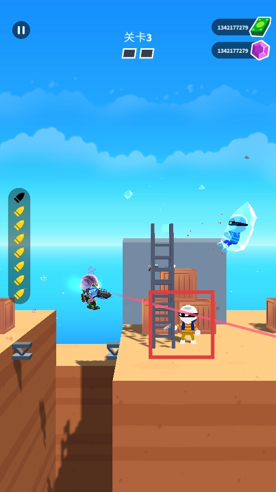 3、将高处敌人消灭后,在瞄准方框内剩余敌人将其消灭即可通关。