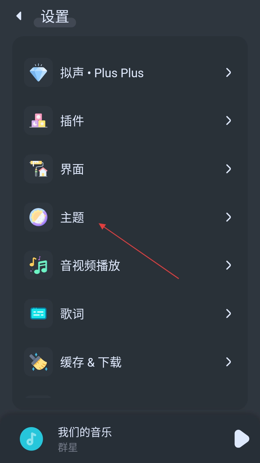 3、在设置页面,点击【主题】,进入主题设置页面。