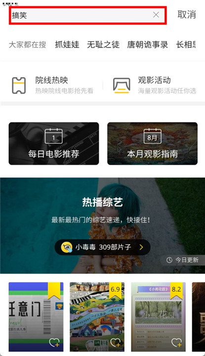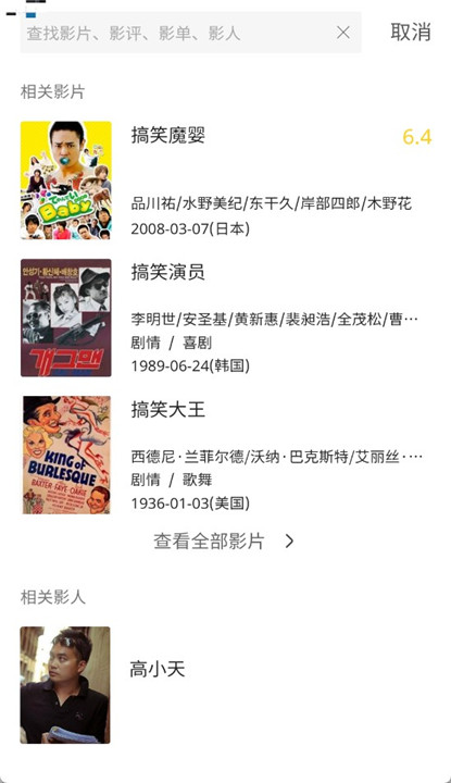 4、点击搜索图标,系统会迅速呈现相关影视列表。