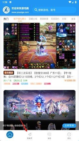 1、点击内的“我要卖号”或“我要卖专区”入口。