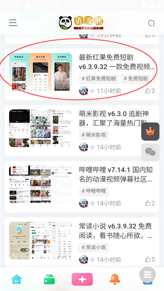 1、第一步,在相应渠道找到并安装资源熊。安装完成成功启动后,就能进入应用的首页,其界面呈现如下。