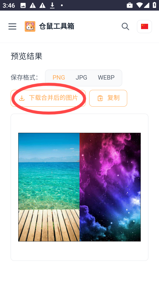 3、确认无误后点击“合并后的图片”,即可保存结果。