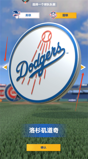 3、点击箭头可以切换球队,我们选择现在最火的道奇队。