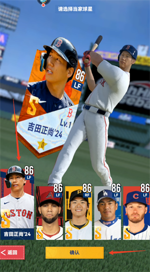 4、然后就可以选择当家球星了,翻了一圈没看到大谷翔平,看来强力的球员都在卡池了,不在原本的球队。