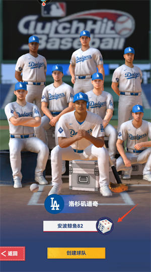 6、队伍组建完成,取个名字点击创建球队就可以开始游戏了,点击骰子可以随机起名。