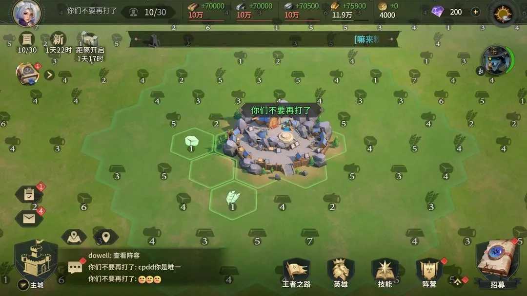 9、每位城主可占领领土数量有限,提升声望值可增加领土土地数量上限。合理利用队伍体力,不断把低级地换成高级地,才能最大化自己的资源收入。