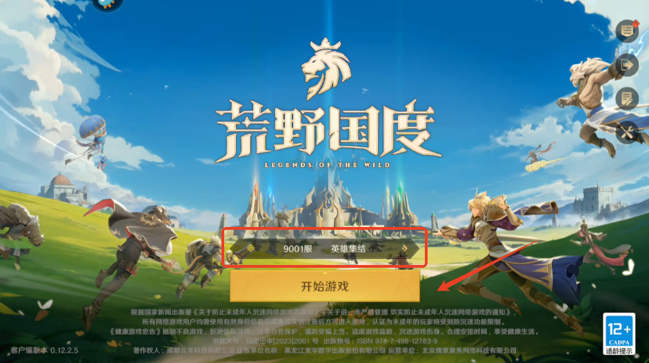 1、荒野国度最新版本进入游戏后先选择自己所在的服务器,新手随意,然后点击“开始游戏”即可。