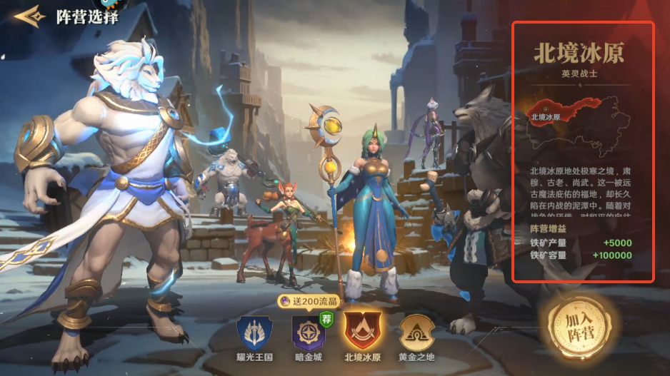 4、再切换北境冰原,则是北欧风格的角色了,喜欢诸神黄昏的玩家则可以选择这个阵营。