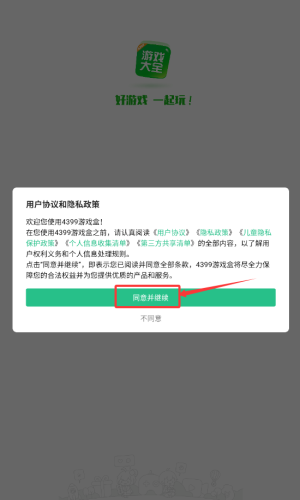 1、阅读用户协议后,点击红框标注的同意并继续按钮。