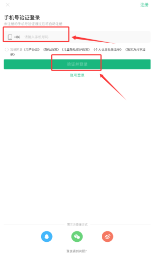 3、输入手机号后点击红框标注的绑定并登录按钮。