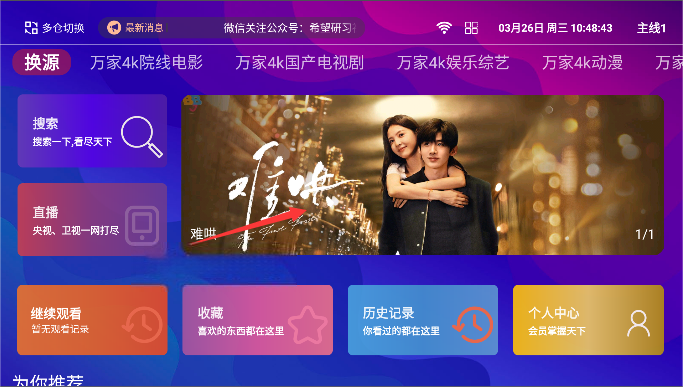 1. 用户能够查看各类经过精心挑选以及推荐的优质节目。同时,用户还能借助输入电影名称或演员名字的方式来搜索节目。