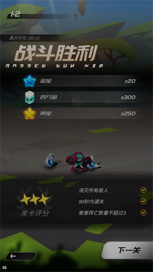 2、关卡里的敌人实力会持续增强,必须尽快升级角色,如此才能解锁更强大的技能。