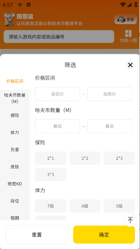 3、可以进行筛选,包括价格、皮肤以及体力等。