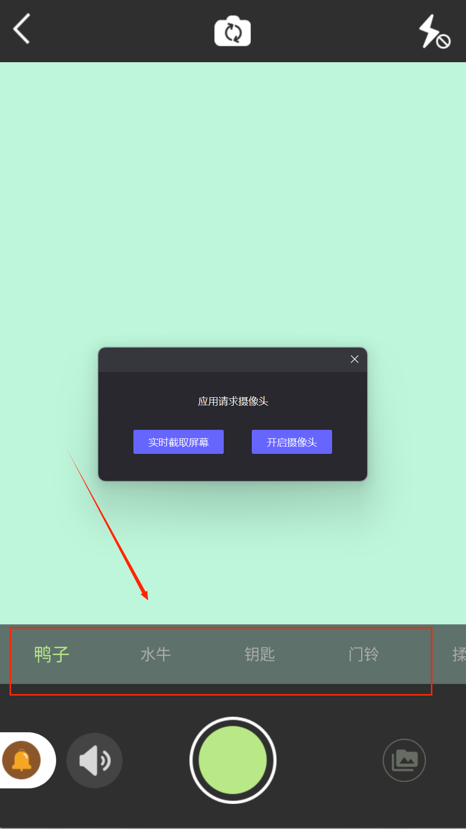 2、点击拍照,选择左下角的猫猫或者狗狗,切换各种表情包,拍摄狗狗或者猫。