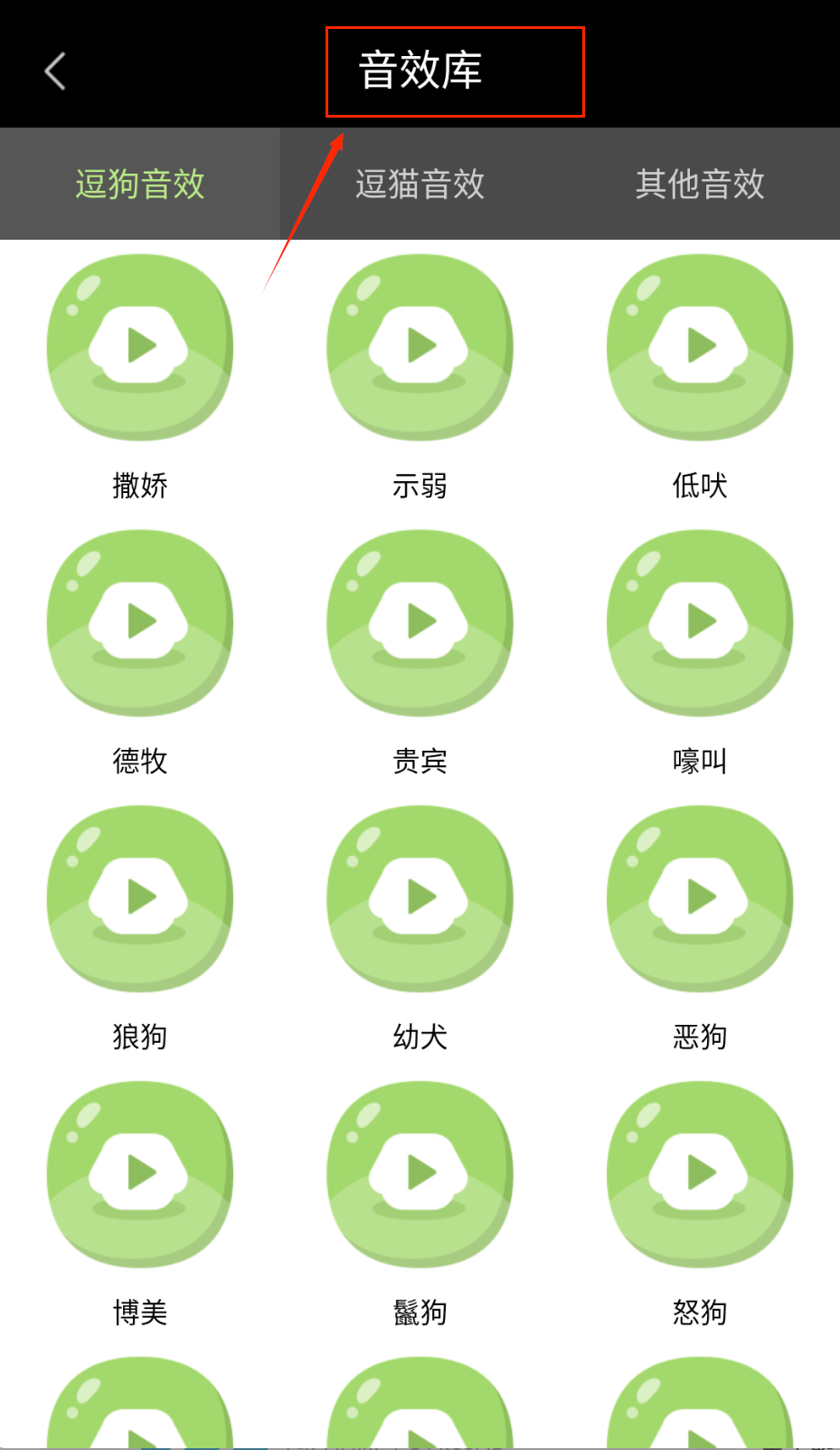 3、返回到软件首页,点击音效库,我们可以看到有关软件的所有音效效果。