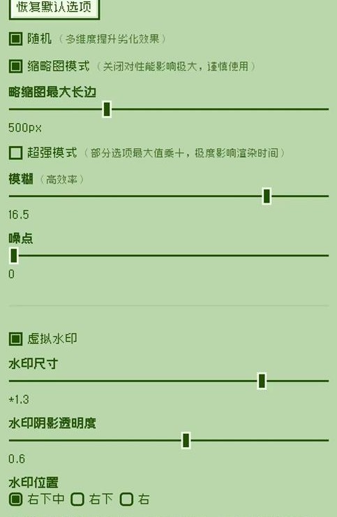 4、还可以设置模糊值,噪点值,是否开启虚拟水印,以及亮度,相对原图尺寸缩放等数值