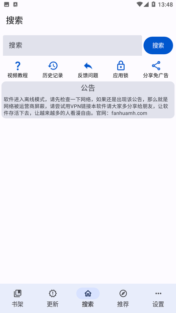 5、正版界面有五个栏目:书架、更新、搜索、推荐、设置,请注意认准。