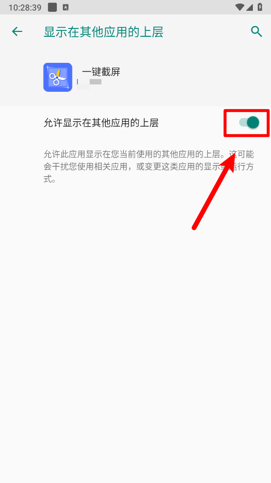 4、会自动跳转至"悬浮窗"页面,打开箭头所指开启后,返回主页。