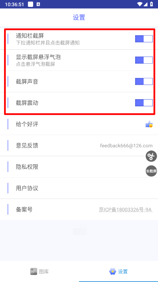 6、最后还可以切换至"设置"页面开启截图声音、震动等。