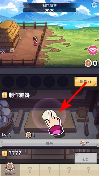 3、消耗糖饼资源,点击糖饼生产对应的购买按钮,解锁新的生产设施,提升糖饼制作效率。