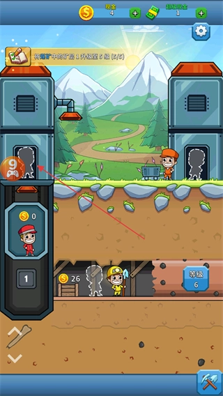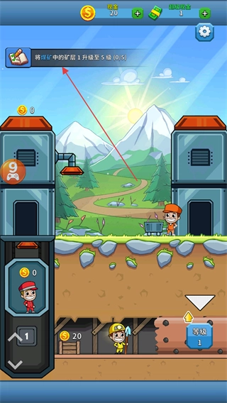 3、升级后矿层等级提升,矿工效率增强,继续积累资源推进任务。