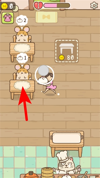 在包子铺里,把包子送到已经就座的仓鼠所在的桌子前,以此完成订单要求。