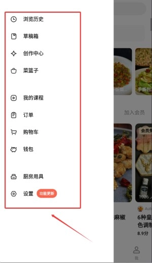 4、点击左上角头像区域进入个人空间,管理收藏菜谱与查看历史操作记录。