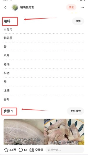 2、选定具体菜谱后,页面会完整呈现所需的食材清单以及详细的制作步骤说明。