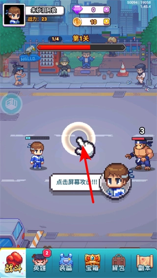 1、进入关卡后,依据提示点击屏幕来触发攻击动作,这是战斗的核心手段,点击能对敌人造成伤害,从而击败目标。