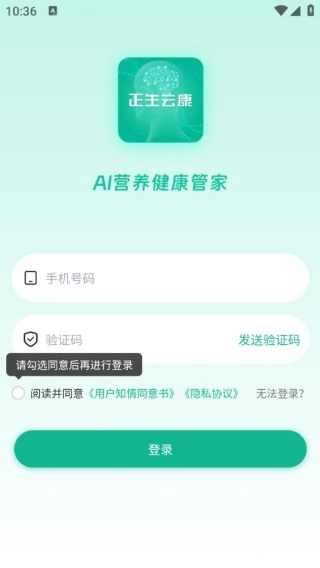 2、进入到登录界面,输入手机号验证码,勾选同意政策,就可以登录。
