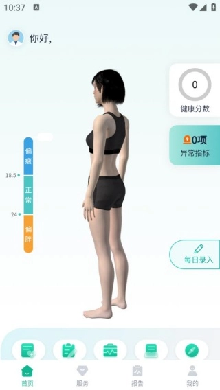 4、进入到平台首页,是可以直接录入自己的身体数据,获取详细分析。