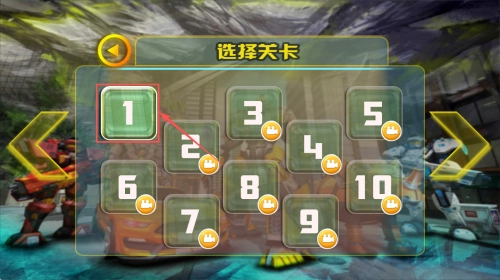 2、如何选择关卡:在关卡选择界面,点击数字1选择第一关,开始你的战斗。