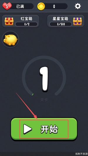 2、接着,点击主界面上的“开始”按钮进入关卡选择。