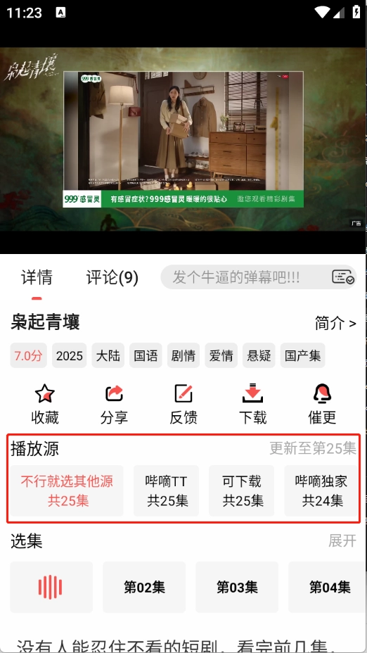 2、在播放源栏目选择播放源进行切换就可以了。