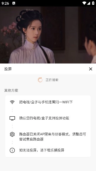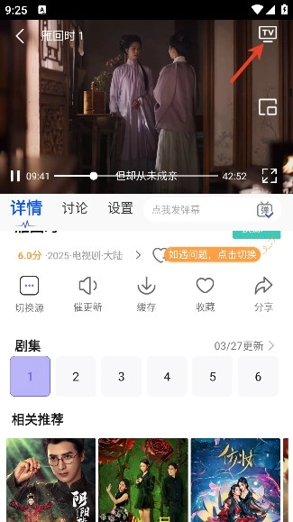 在视频播放界面点击投屏按钮,选择处于同一局域网中的电视设备,就能开启大屏观看体验。