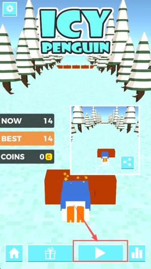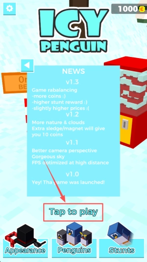 1、进入游戏:在ICY PENGUIN的“Tap to play”界面中,点击“Tap to play”按钮即可。