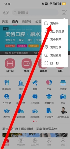 1、使用发帖功能之前,需要使用账号密码登录,打开融水好门户,在首页中点击右上角的图标,找到【发帖子】。