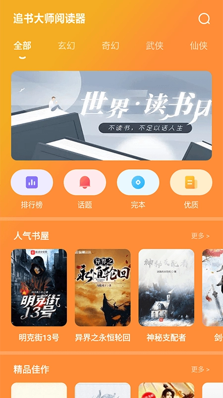 1. 安装追书大师阅读器;