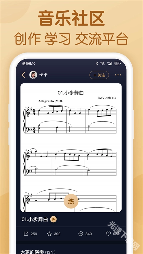 4. 社区分享:把编辑完成的乐谱或是练习过程中的心得分享到社区里,和其他音乐爱好者一起交流、相互学习。