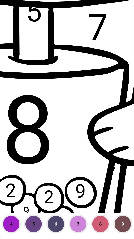 3、点击图片即可放大,放大后的画面里会呈现每个部位对应的填色号码,操作时先点击下方的数字,接着点击画面中对应数字的部位就能完成填色。