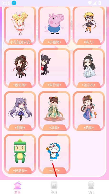 1、进入哈屏桌宠主界面后,点击底部菜单栏里的“壁纸”按钮,即可进入壁纸资源专区。