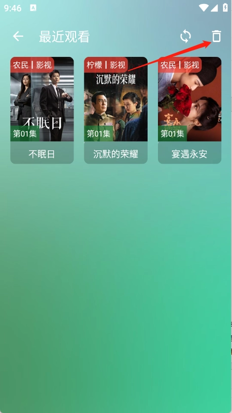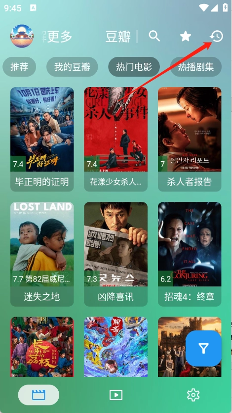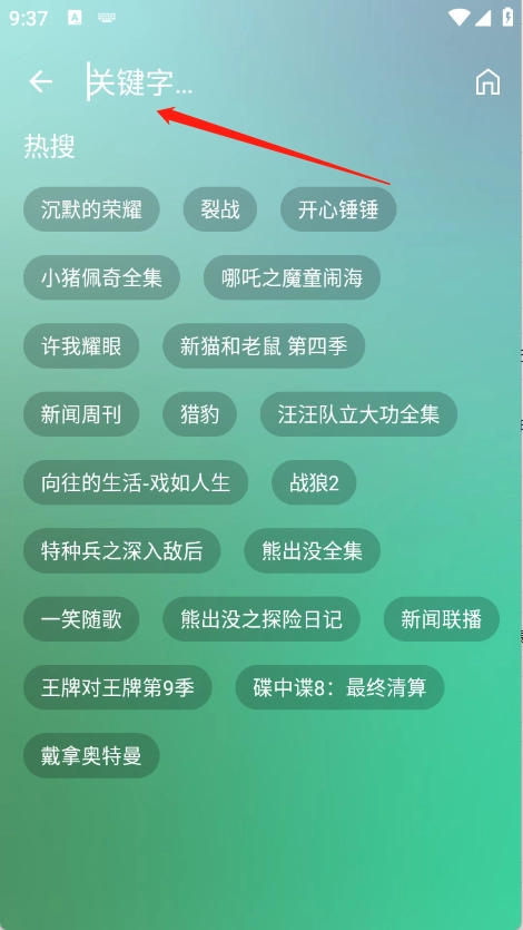 2、进入首页后,点击左上角箭头所指的位置,即可切换播放源。
