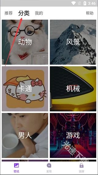 2、分类界面可以按类型查找壁纸